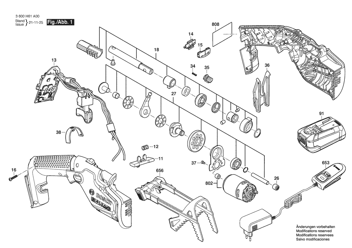 Схема деталювання Акку. Садовая пила KEO 18V (3600H61A00)
